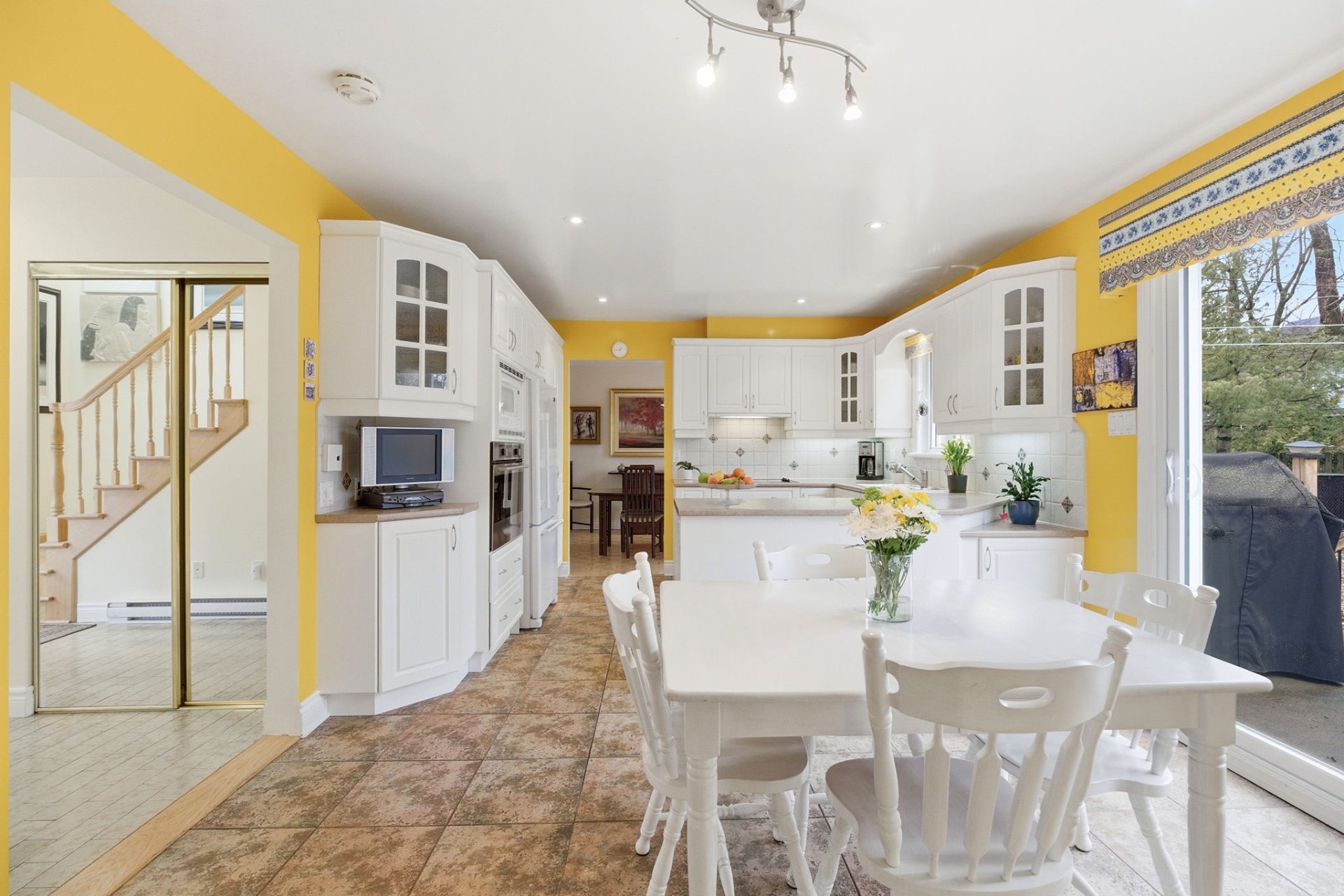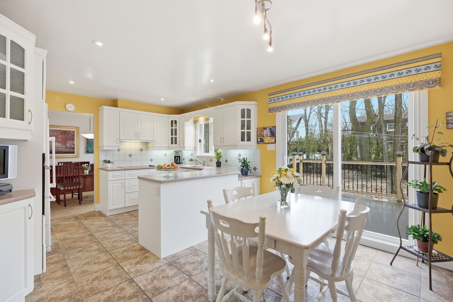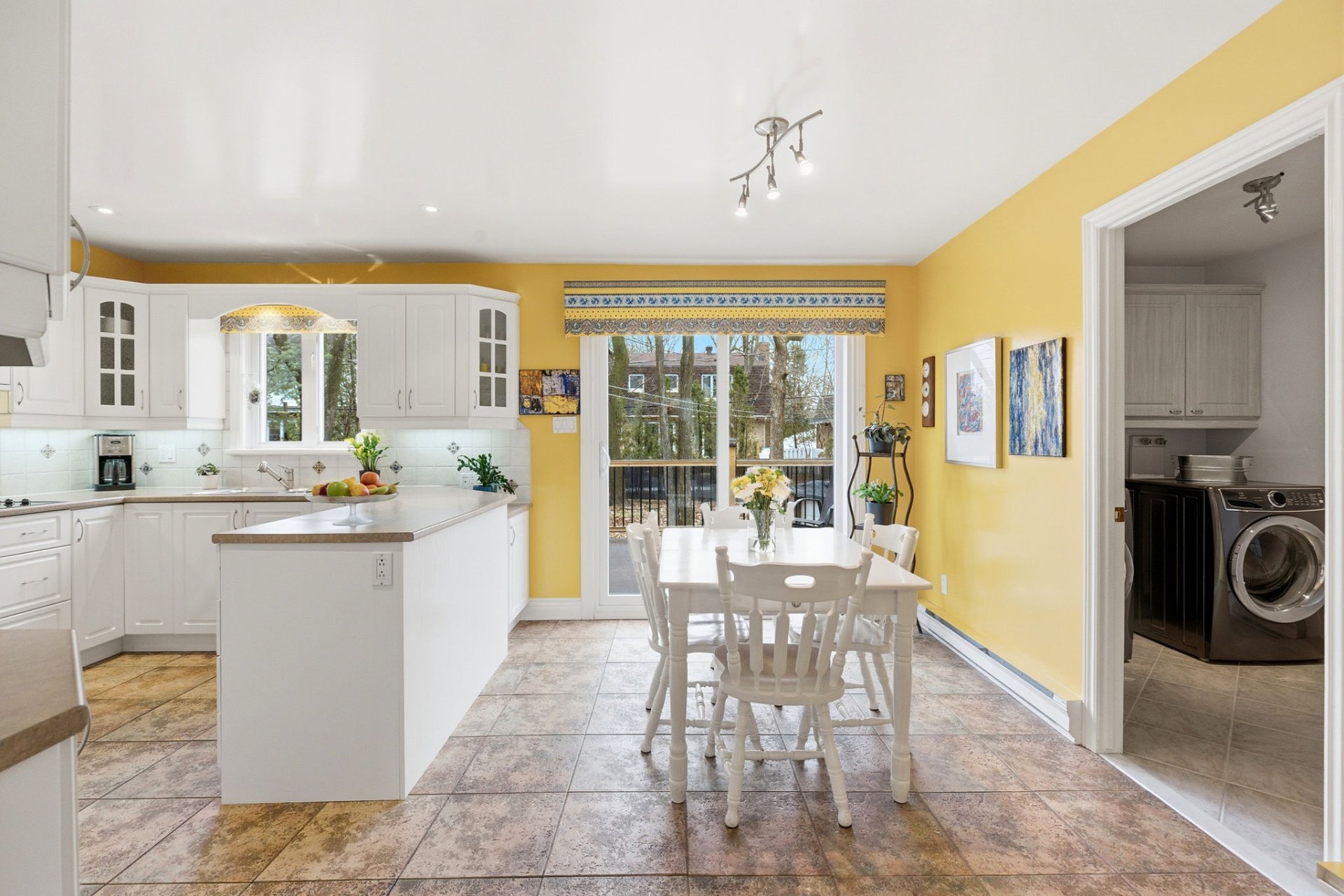 La salle à manger se démarque par sa belle luminosité et son volume, accentué par une grande arche qui s'ouvre sur le salon. Cet élément architectural donne du caractère à l'espace et crée une belle fluidité entre les pièces. Un coin repas adjacent à la cuisine vient compléter l'aménagement et facilite le quotidien.