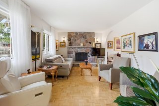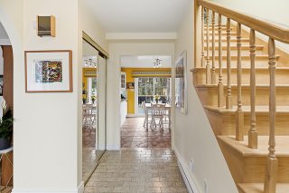 À l'intérieur, la lumière naturelle circule généreusement et met en valeur des espaces harmonieux, chaleureux et bien pensés. L'équilibre entre les planchers de bois et de céramique apporte à la fois cachet et fonctionnalité. Le salon, avec son foyer en pierre, devient un véritable espace de détente où l'on aime se retrouver, particulièrement lors des soirées plus fraîches.