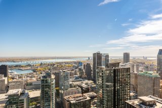 Bienvenue au Maestria Condominiums, une adresse emblématique où design, confort et prestige redéfinissent la vie urbaine. Situé au 53e étage, ce studio entièrement meublé offre l'une des plus belles vues sur le fleuve Saint-Laurent, un spectacle grandiose du lever au coucher du soleil.