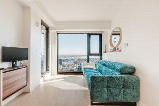 Vivez au sommet du Quartier des Spectacles et profitez de la plus belle vue du Maestria! Situé au 53e étage du prestigieux complexe, ce studio haut de gamme offre une vue saisissante sur le fleuve et la ville. Entièrement meublé (valeur de plus de 10 000 $), il séduit par sa luminosité, ses finitions soignées, son balcon privé et son rangement inclus. Profitez de plus de 40 000 pi² de commodités : piscines, spa, sauna, terrasses, salle d'entraînement, cinéma, lounges, simulateur de golf, passerelle suspendue unique et sécurité 24/7. Emplacement de choix, à deux pas du métro Place-des-Arts, des restaurants et des attraits culturels.